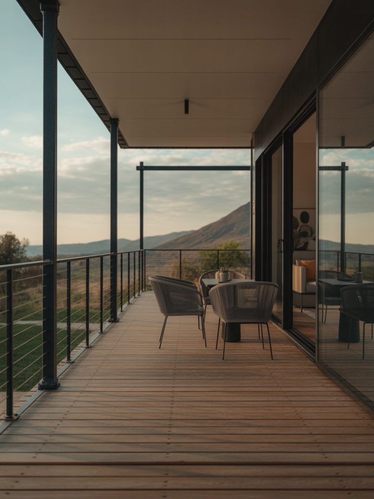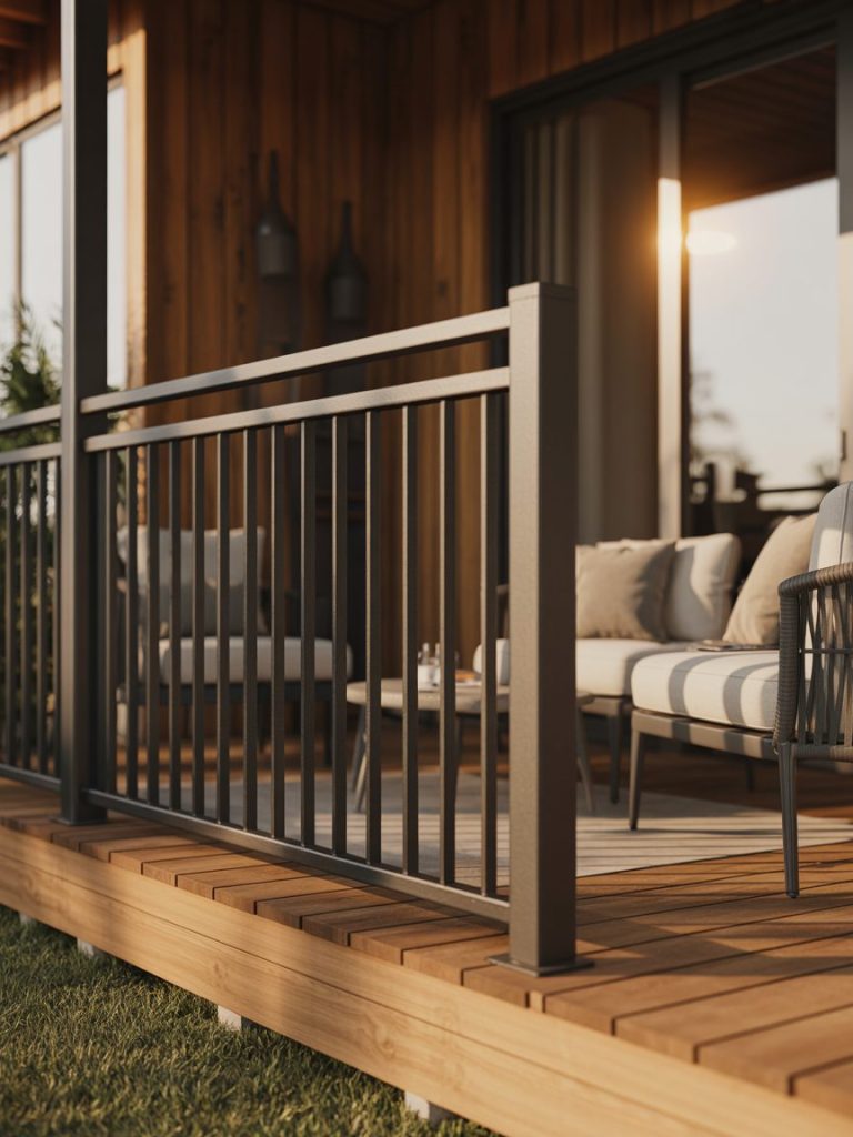 Choosing furniture that echoes your railing color ties everything together. Black railings with black metal chairs work beautifully. Too many colors break the flow.
