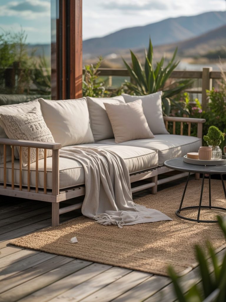 Outdoor rugs instantly define your seating area and add warmth underfoot. Look at options similar to cozy rugs for inspiration. Always choose weather-resistant materials — indoor rugs won’t survive.
