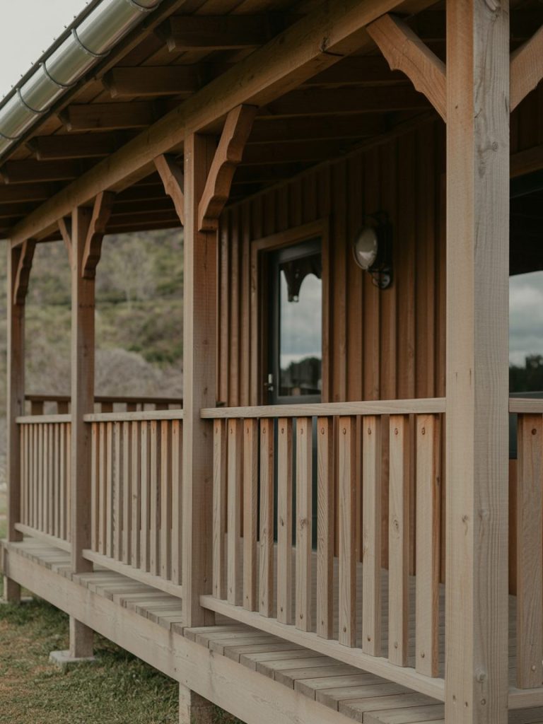 Unpolished wood with visible grain brings a grounded, earthy vibe. Perfect for rustic porch railing lovers. Too rough can feel unfinished — find the balance.