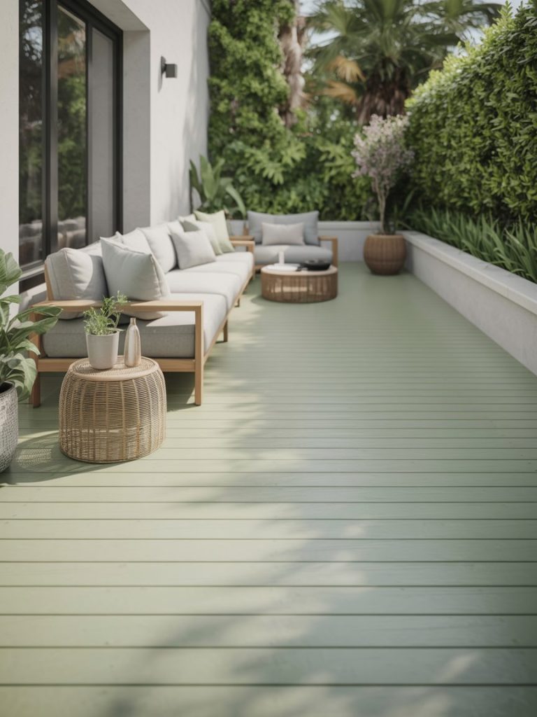 A soft gray or muted sage paint can revive an old deck instantly. It’s one of the easiest deck makeover ideas. Prep matters more than paint — don’t skip sanding.