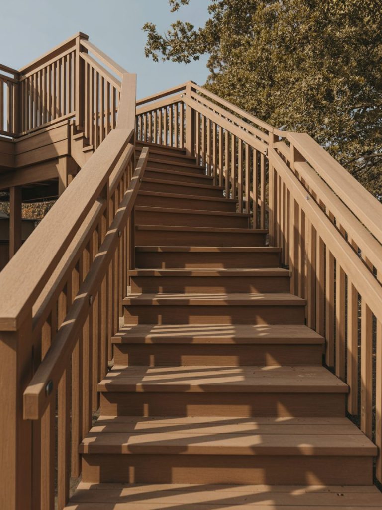 Matching your stair railing with your main deck creates visual flow. It’s a small detail that makes a big difference. Mismatched stairs always feel like an afterthought.