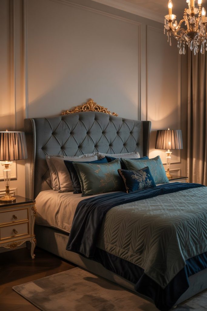If you want to add drama without going overboard, a dark grey tufted headboard is your go-to. The tufting adds texture and a touch of elegance.