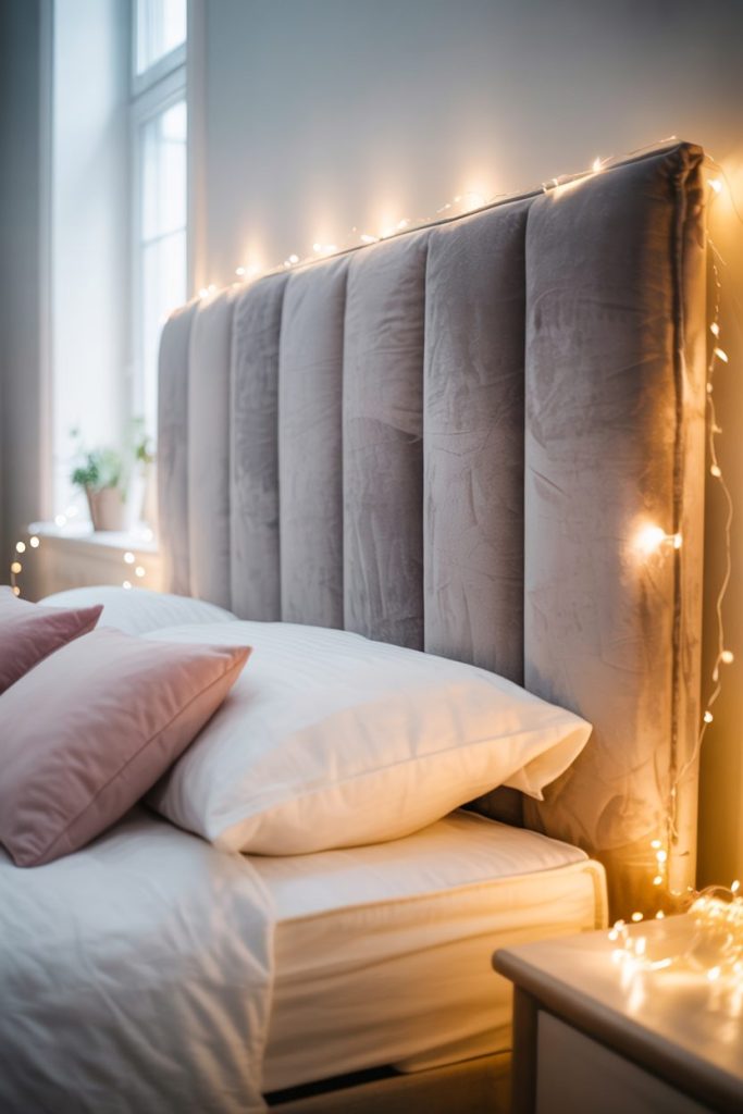If you want your bedroom to feel like a warm hug, go for a plush upholstered grey headboard. The soft fabric adds texture and invites you to lounge comfortably.
