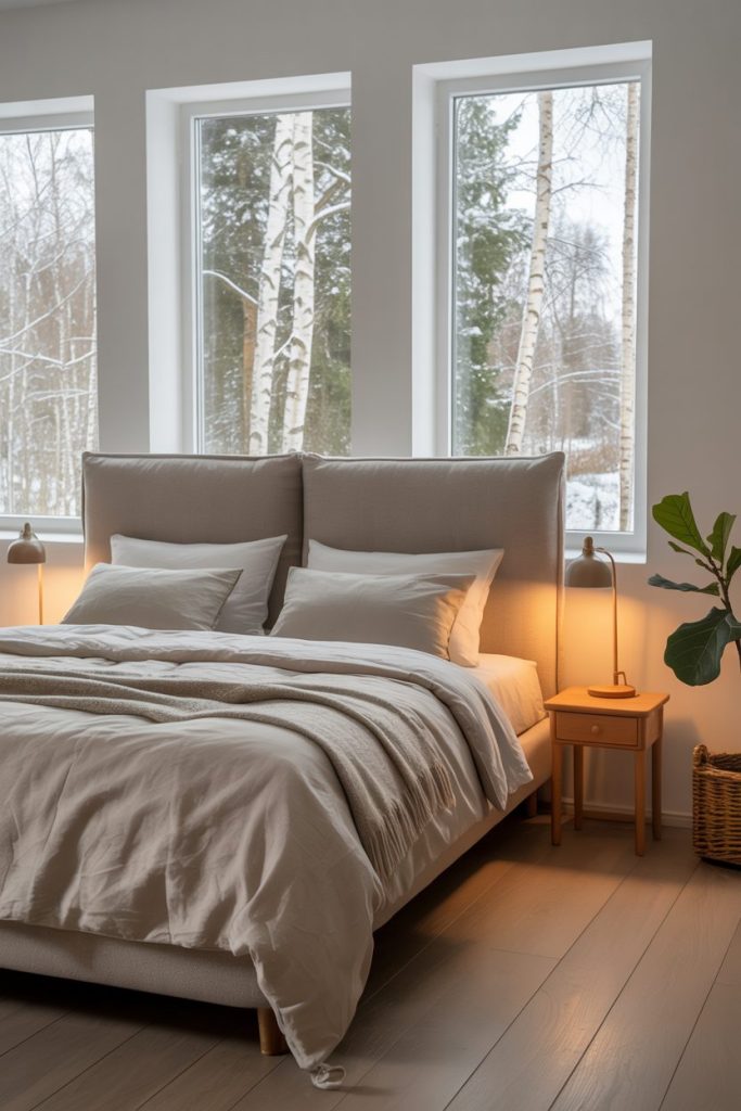 5. Scandinavian Simplicity: Light Grey Fabric Headboard