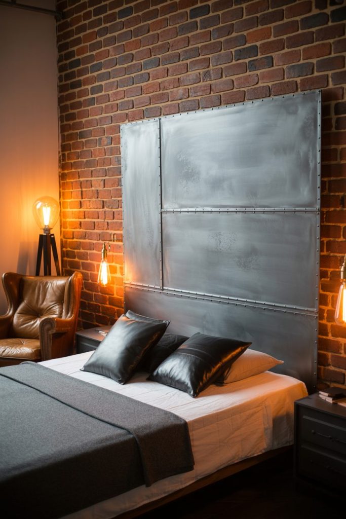 For the urban loft lover or those who dig industrial vibes, a grey metal headboard adds a cool, edgy touch.