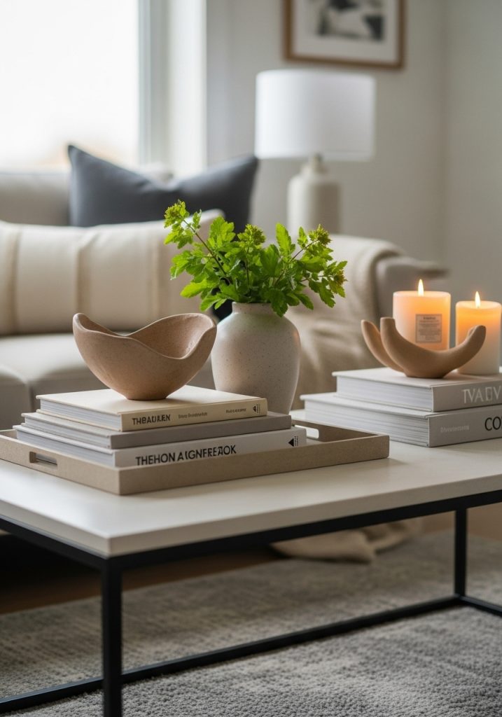 You don’t need new furniture to change the look; you just need to style what you have better. Your coffee table is prime real estate.