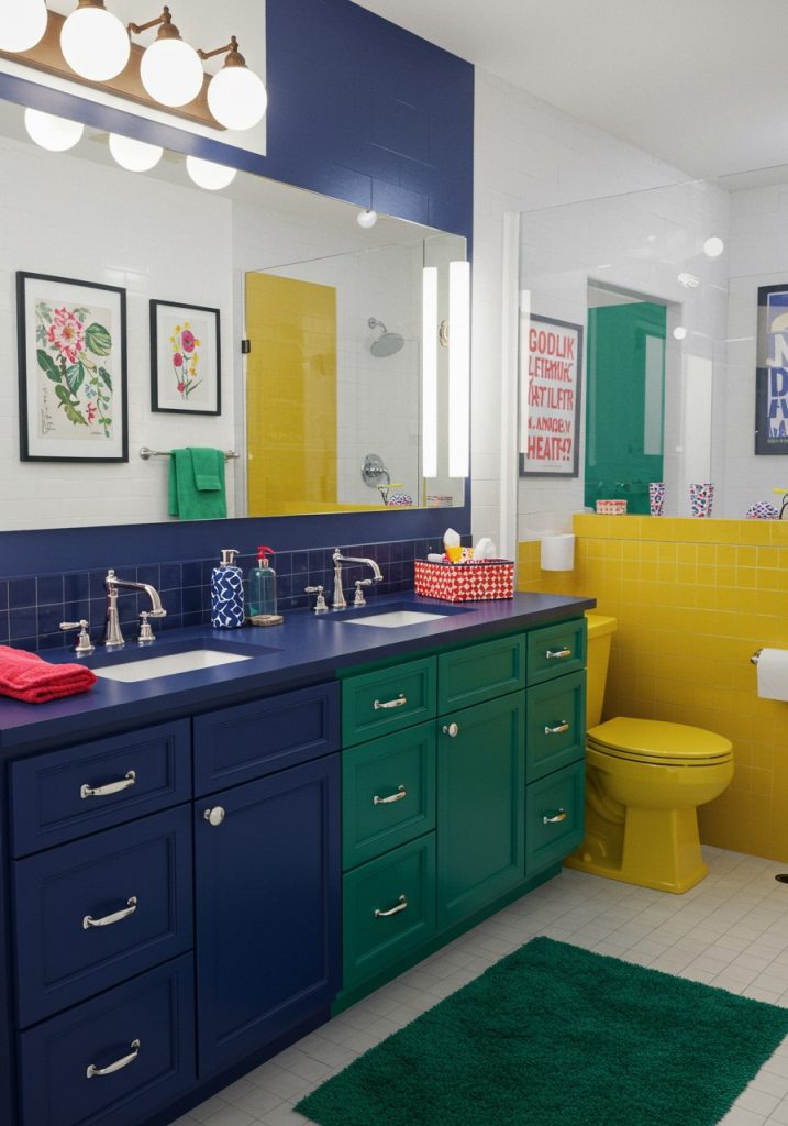 Nothing says personality like a bathroom vanity painted in vibrant colors—navy, forest green, or sunrise yellow.