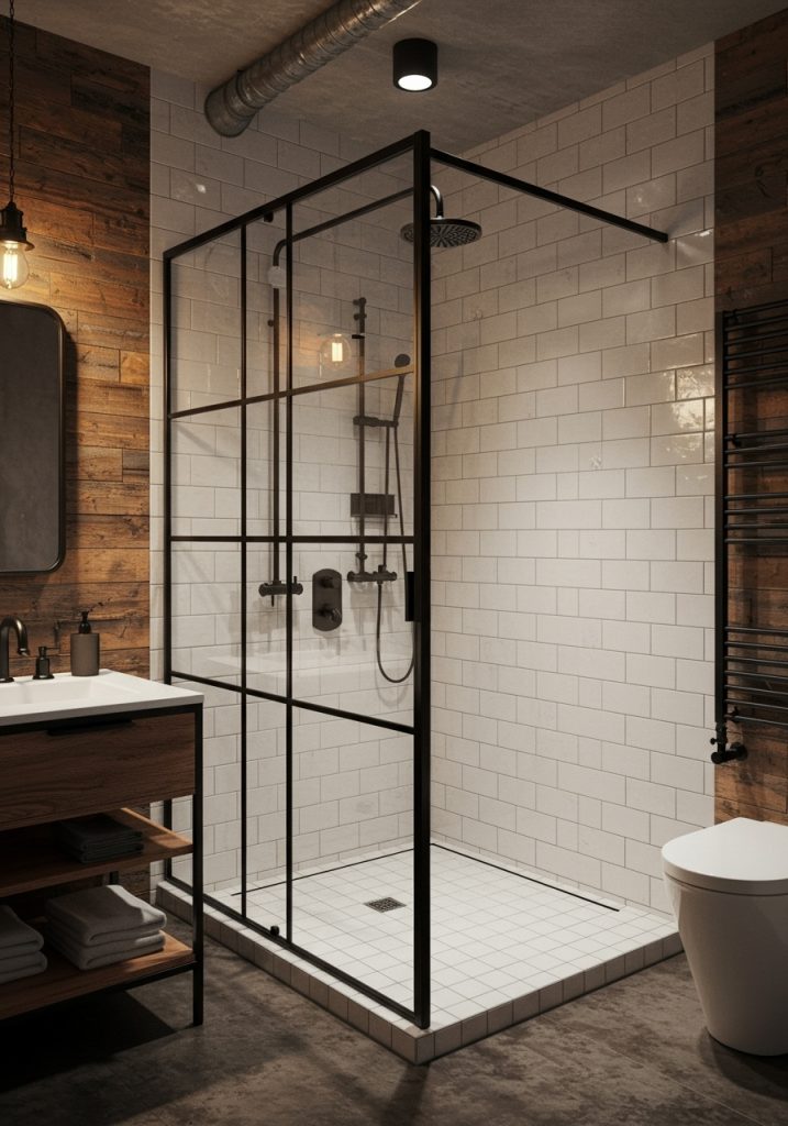 Goodbye, boring shower curtains and frameless glass. Hello, black-framed (or ‘Crittall-style’) shower screens. This look is huge in modern and industrial design. The black grid breaks up the glass and adds an architectural element that is just so cool.