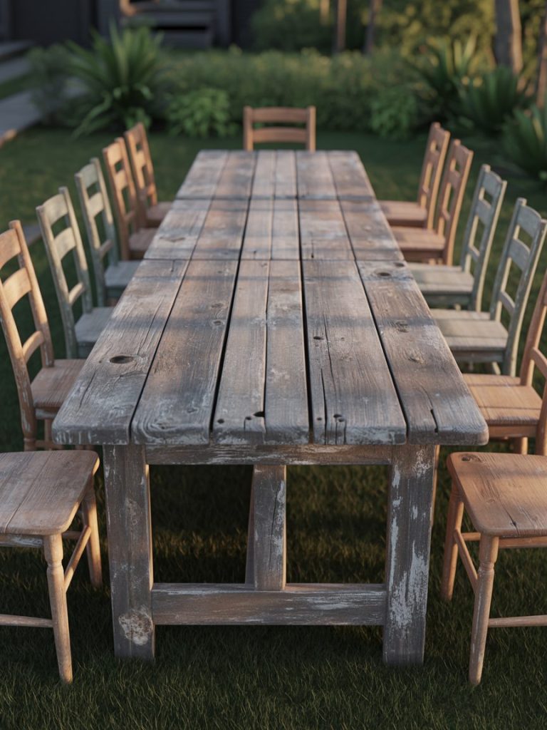 A long, weathered wooden table acts as the heart of the party. Don’t cover it with a cloth; let the grain and the “imperfections” show. If you are looking for ways to style larger outdoor areas, these rustic garden decor ideas offer great inspiration for permanent fixtures.
