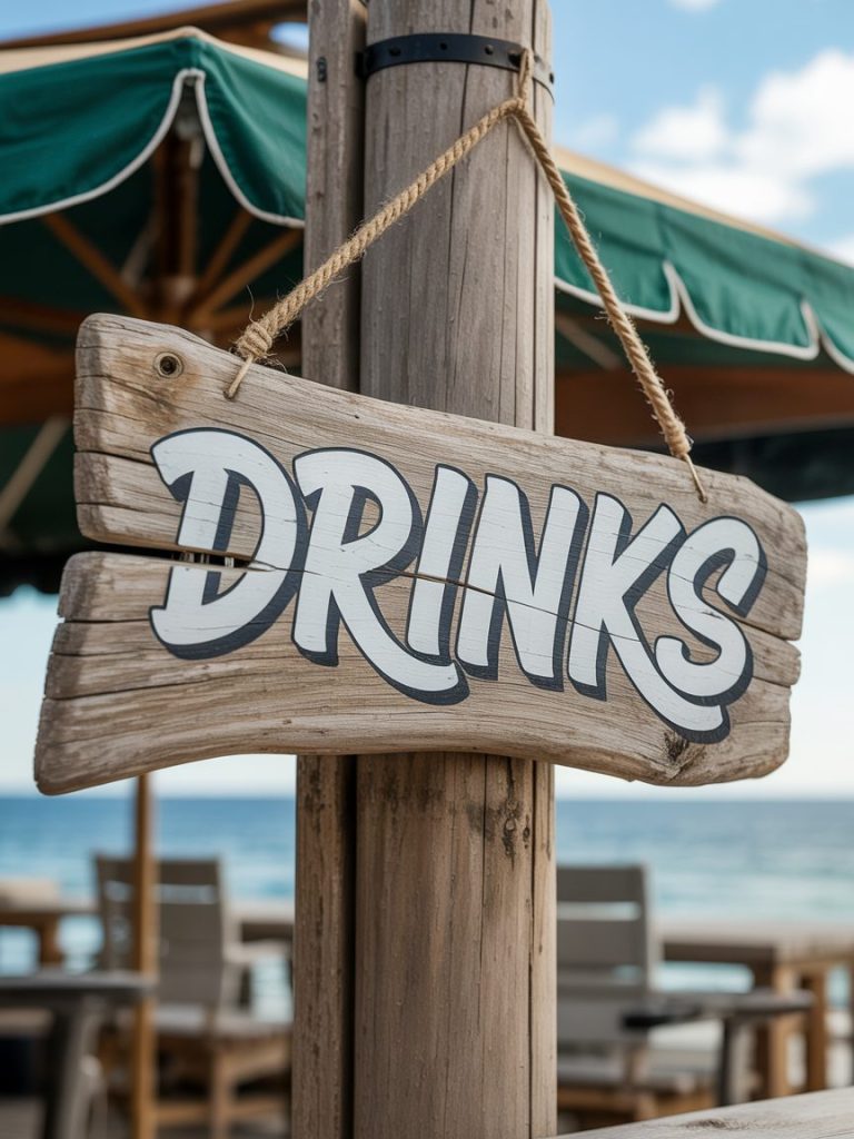 Use pieces of driftwood or reclaimed barn wood to create directional signs like “Drinks,” “Dancing,” and “Dreams.”