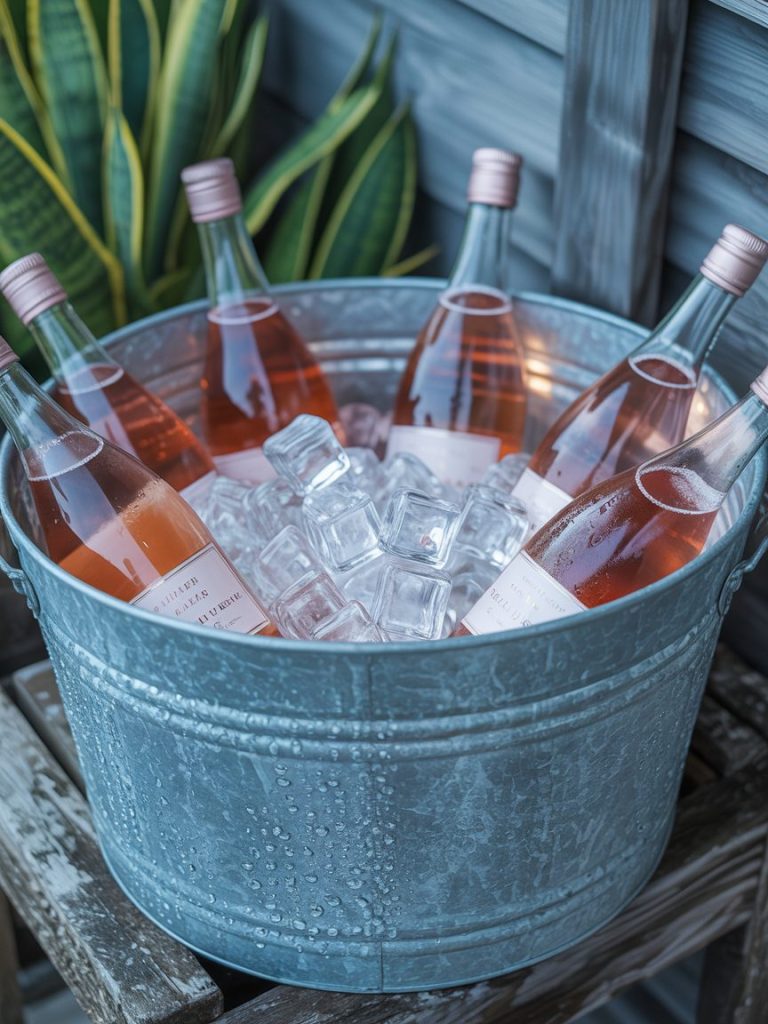 Fill vintage wash bins or galvanized buckets with ice to hold drinks. It’s functional, rugged, and fits the rustic aesthetic perfectly.