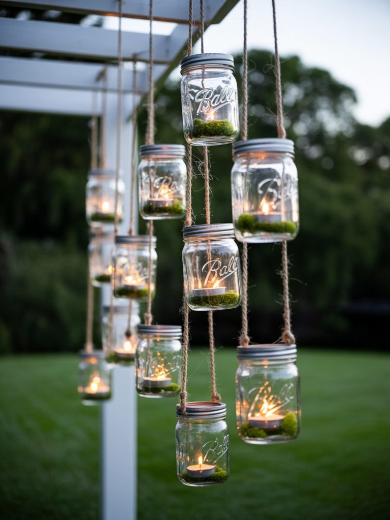 Suspended mason jars with tea lights are a classic for a reason. Use twine to hang them at varying heights from a pergola or a sturdy oak limb. FYI, using tinted blue or amber glass jars adds a subtle pop of color to the glow.