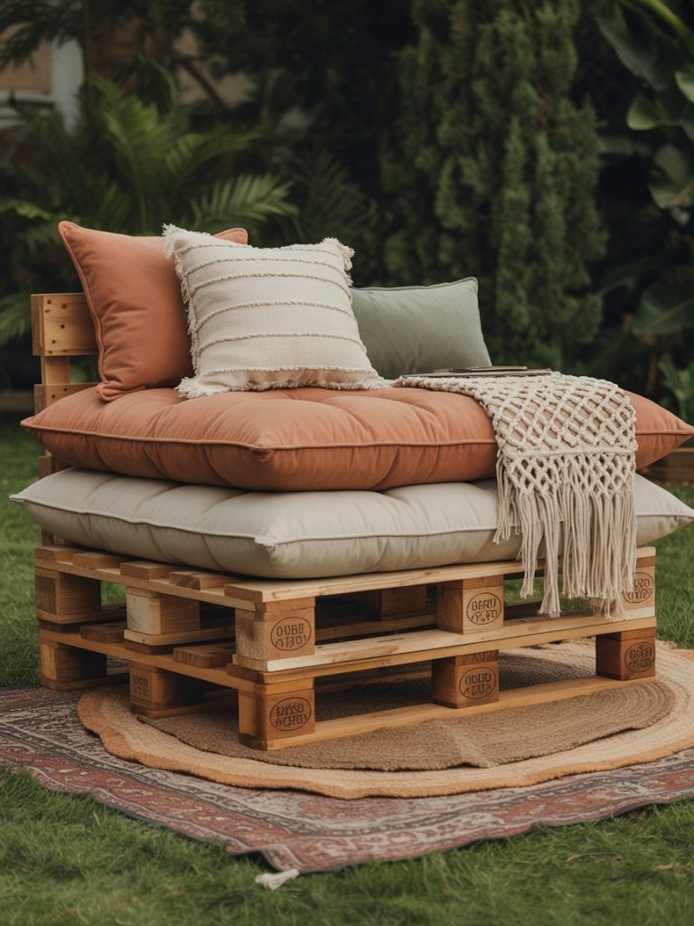 - Seating: Keep it low and comfortable with pallets and rugs.