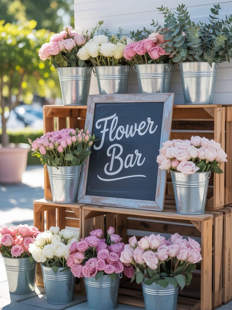 Set up a wooden crate filled with fresh blooms and shears. Let guests create their own mini bouquets or flower crowns. It’s a gorgeous photo op and a great way to use stunning home garden ideas as part of the event.