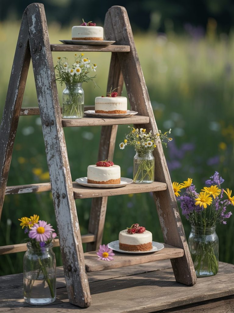 Use an old wooden ladder to hold cupcakes, party favors, or even a collection of decorative wall clocks set to different time zones if you have guests coming from afar.