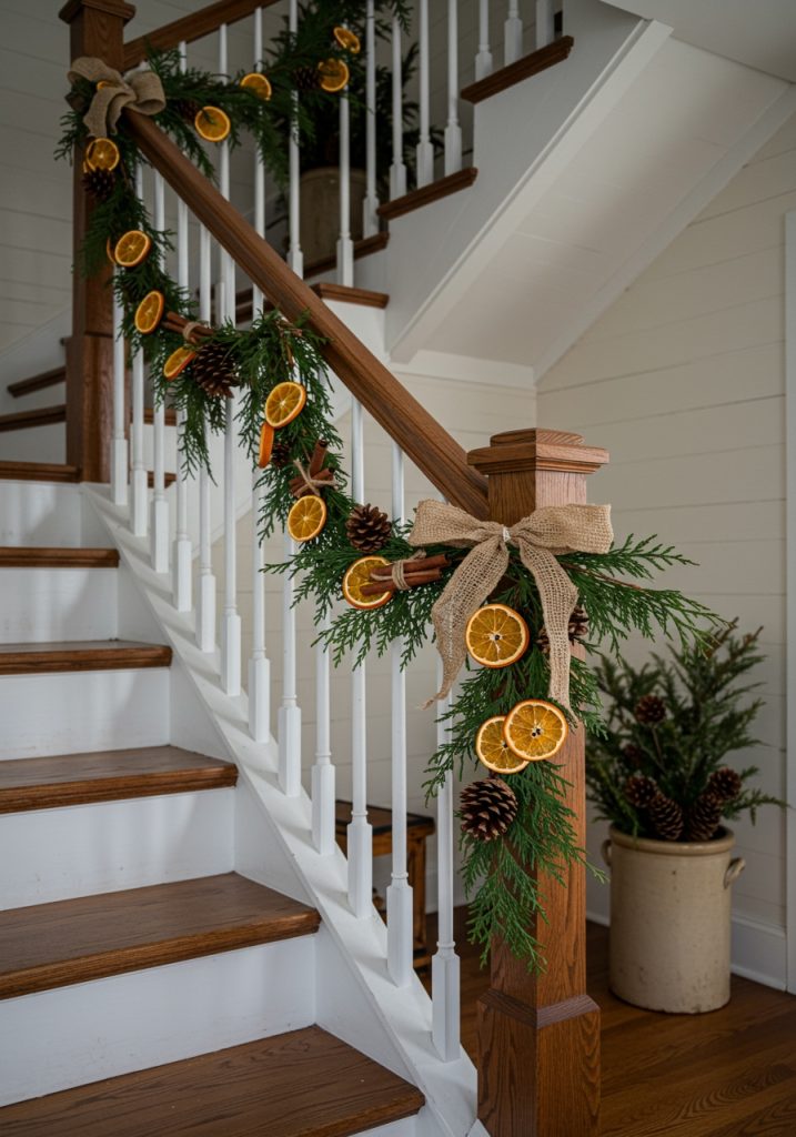 2) Farmhouse Citrus & Pinecone Garland (Cozy + Fragrant)