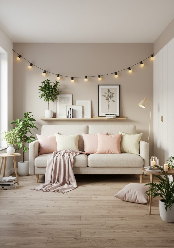 For extra coziness, use string lights or battery-operated candles to add soft, warm lighting to your living room. These subtle touches help create a relaxing vibe without overwhelming the space.