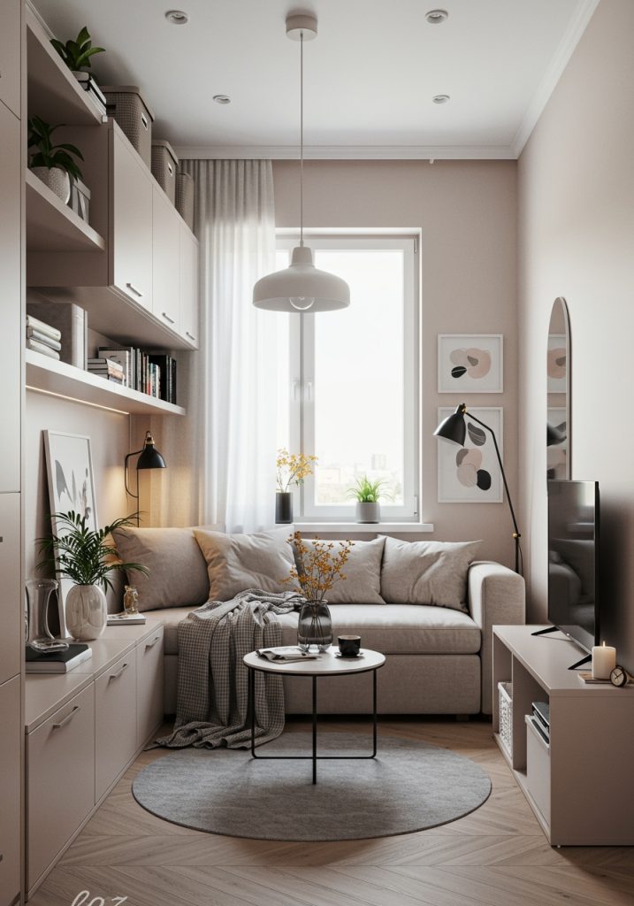 In a small living room, every item should serve a purpose. Here’s how you can make your decor work harder for you: