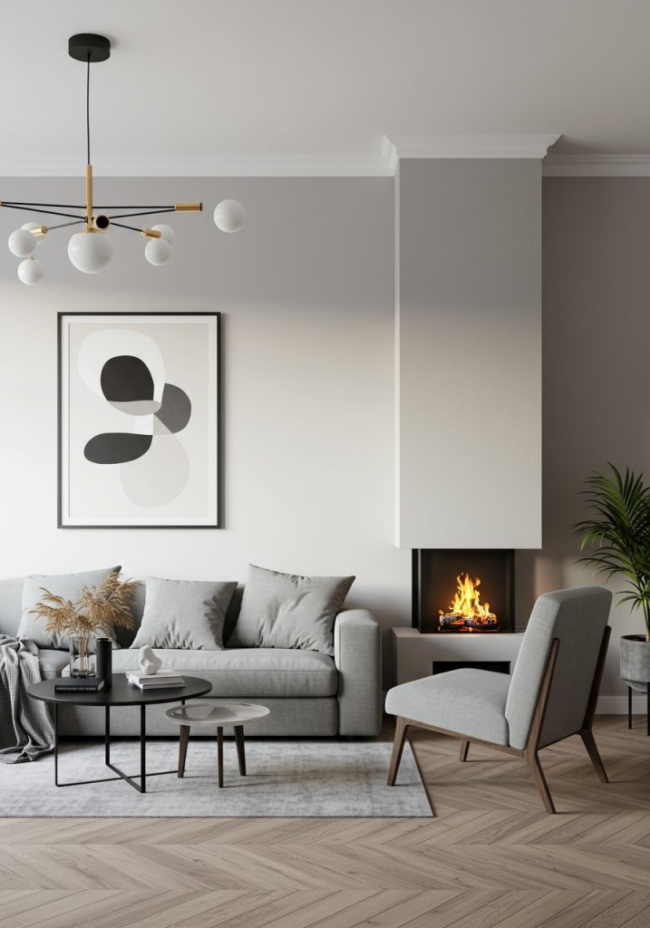 If you don’t have a fireplace, try using a large piece of art or a statement piece of furniture, like a unique chair or table, as a focal point. Keep it bold but not overwhelming.