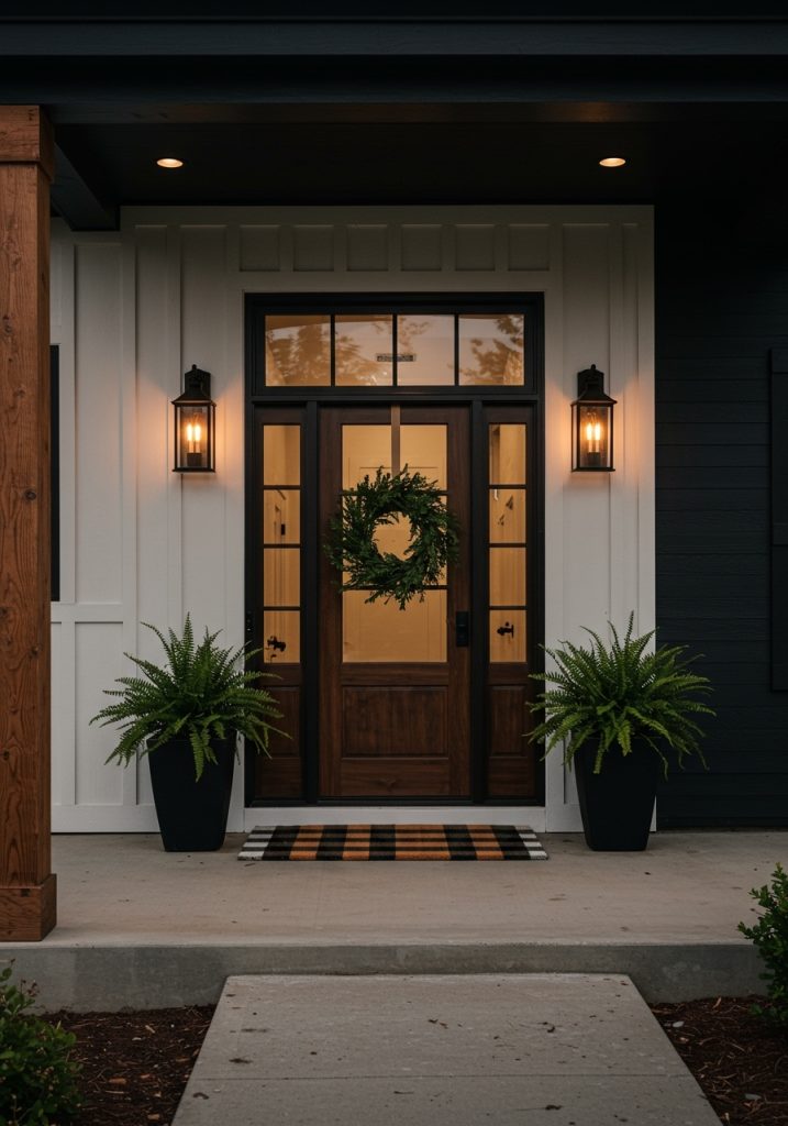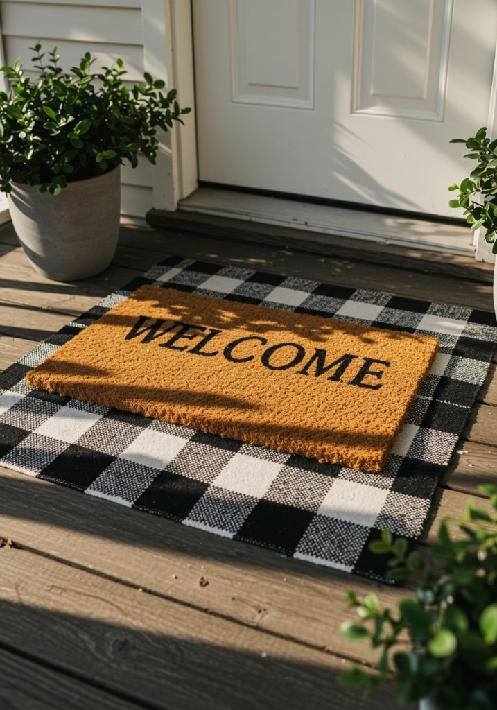- Extras: A simple, clean wreath, a buffalo-check doormat.