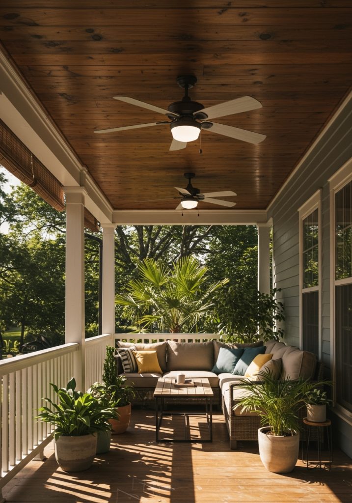 If you live anywhere that gets remotely warm or buggy, a porch ceiling fan is a non-negotiable. It’s a total game-changer. It keeps you cool on hot, humid days and, IMO, the breeze really does help keep the mosquitos away.