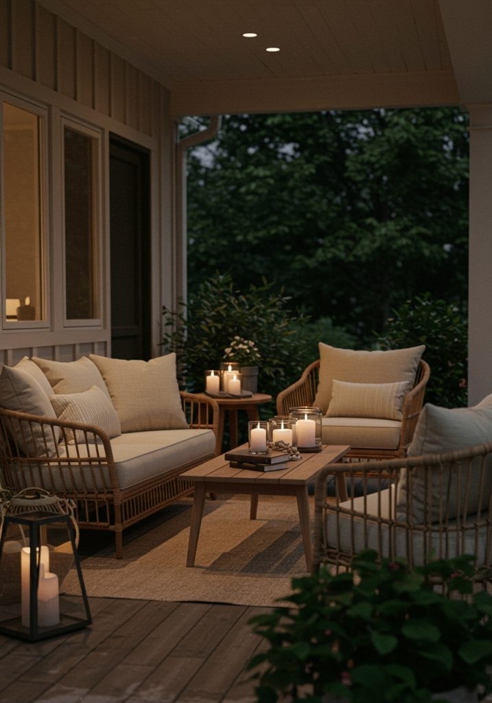 This is my personal favorite. Treat your porch like an outdoor living room. A “conversation set” usually means two comfy armchairs, maybe a small loveseat, and a coffee table. This transforms your porch from a “pass-through” to a “destination.” It’s all about creating cozy apartment living room designs, but for the outside!