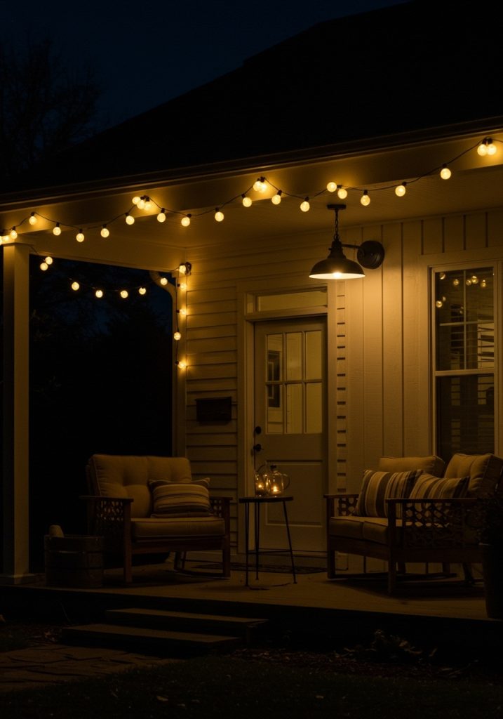Seriously, string light ideas aren’t just for bedrooms. Tucking them under the eaves of your porch creates a magical, bistro-like glow at night. It’s an instant 10/10.