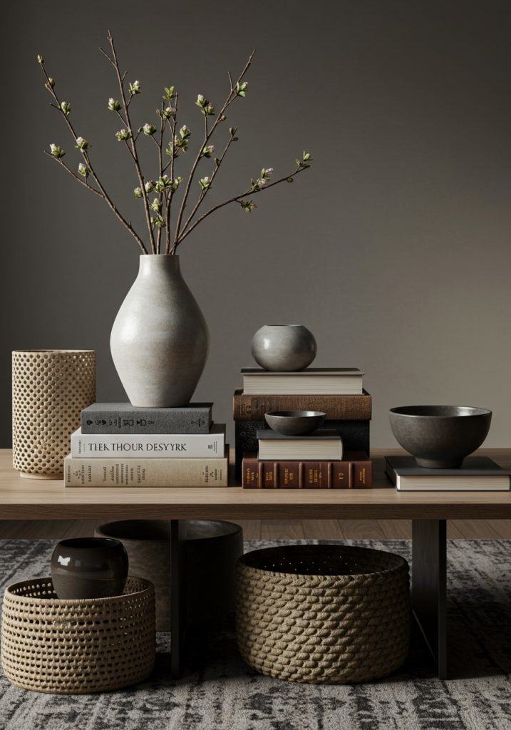 Texture is your best friend. Combine glossy ceramics with woven baskets, or mix wood with glass and metal. This not only looks curated but also feels cozy and inviting.
