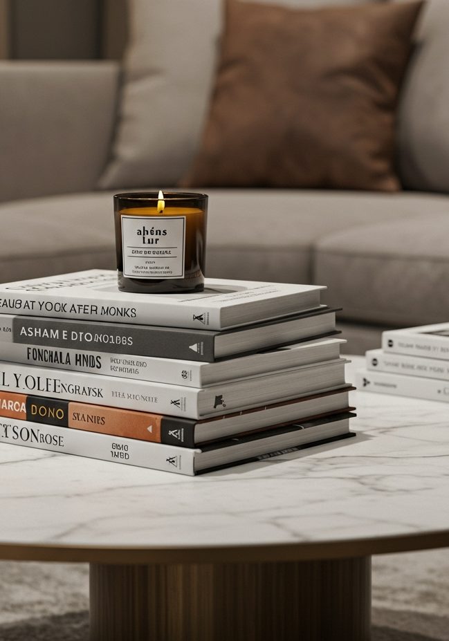 - Top the stack with a smaller decorative item (like a candle or a small plant).