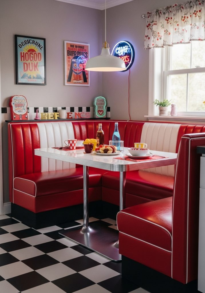 Channel a bit of retro cool with a booth-style banquette. High backs, channel tufting, and maybe a pedestal table give you that classic diner feel right at home. Pass the milkshake, please!