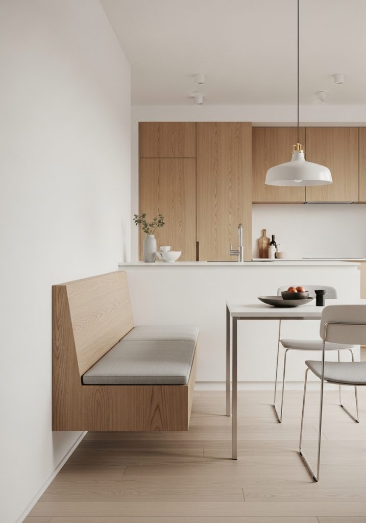 For the modern purist, a floating wooden bench with no backrest (or a simple leather strap cushion) is stunning. It keeps sightlines open, which is crucial if you are following advice on how to design an open kitchen to make your space feel bigger.