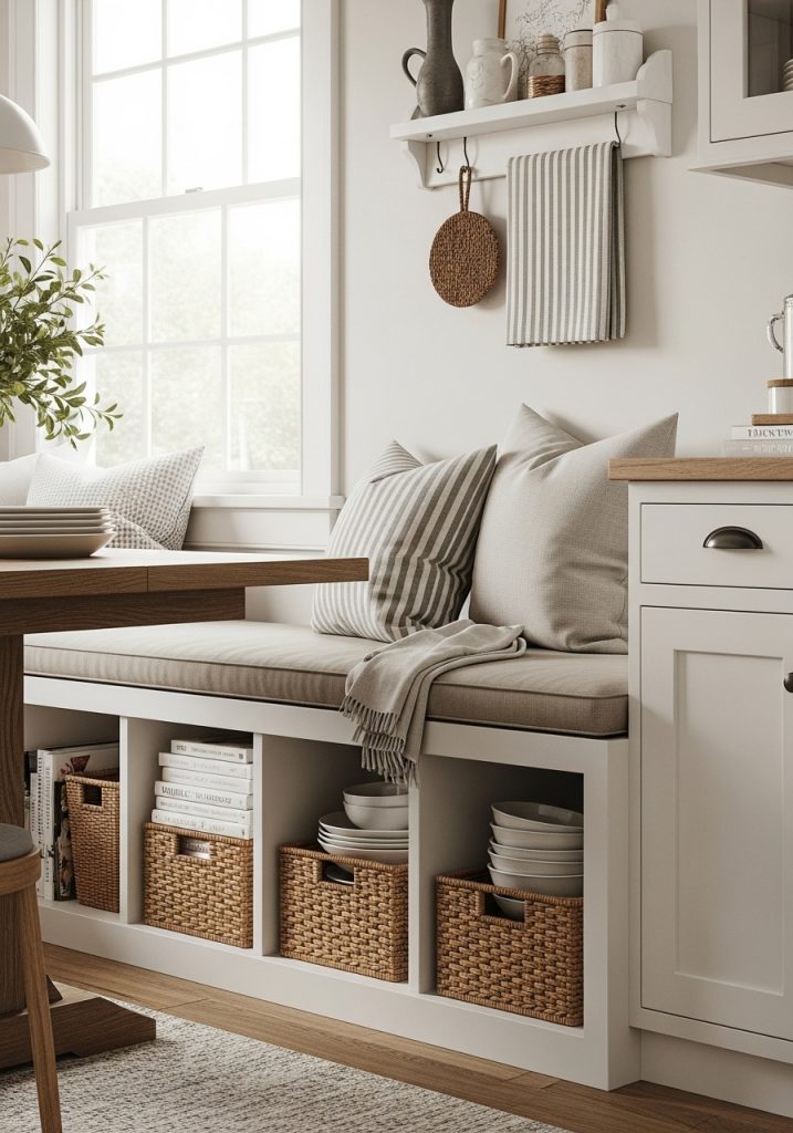 Which style of banquette would fit your home best? A cozy farmhouse corner or a sleek modern booth? Let me know!