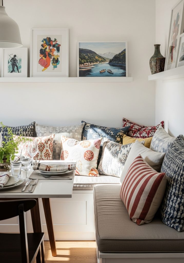 Finally, you need to dress the space up. A banquette is a focal point, so treat it like one.