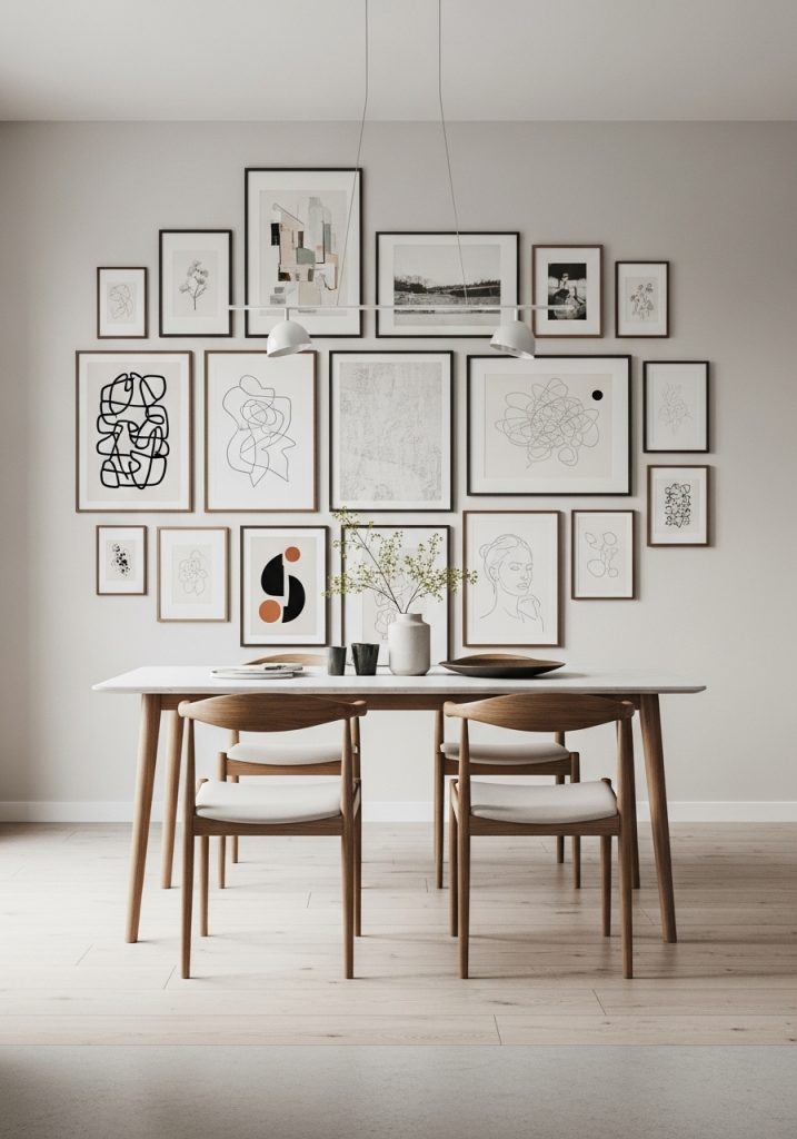 Your dining room walls deserve better than a single, generic framed print. Treat your dining space like an art gallery. A curated gallery wall is a fantastic way to inject your personality into the room.