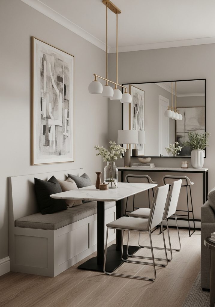 Not everyone has a grand dining hall, and that’s totally fine. Modern design thrives in small spaces because it’s all about efficiency.
