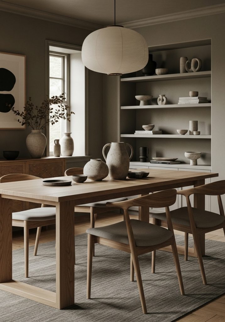 - Materials: Light woods (oak, ash), rattan, linen, stone.