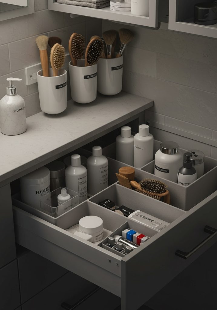 Keep only what you actually use regularly. Everything else should be stored elsewhere or donated. Use drawer organizers, cabinet bins, and wall-mounted holders to keep essentials tidy and accessible.
