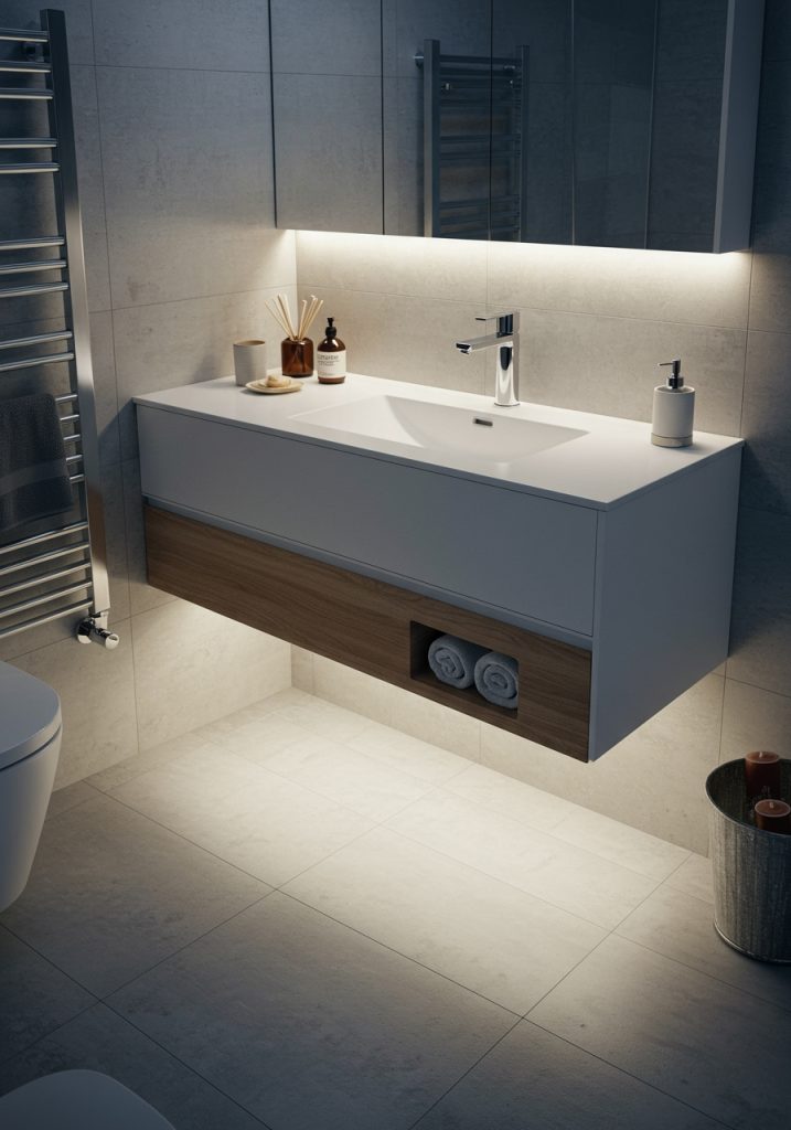 Here’s where things get really exciting – floating vanities are like magic for small bathrooms. By mounting your vanity on the wall instead of having it sit on the floor, you create the illusion of more floor space. Your eye can see the floor continuing underneath, which tricks your brain into thinking the room is larger.