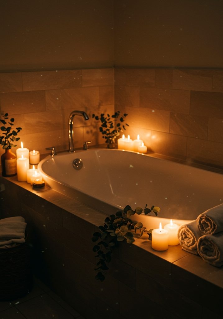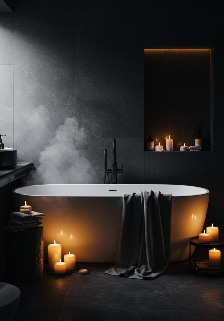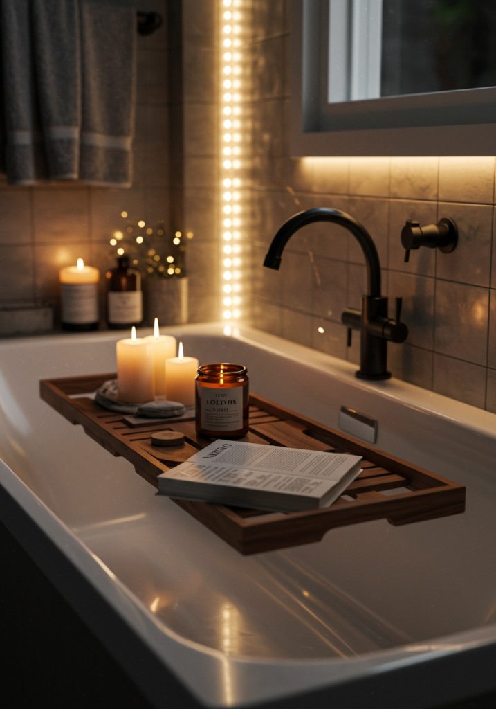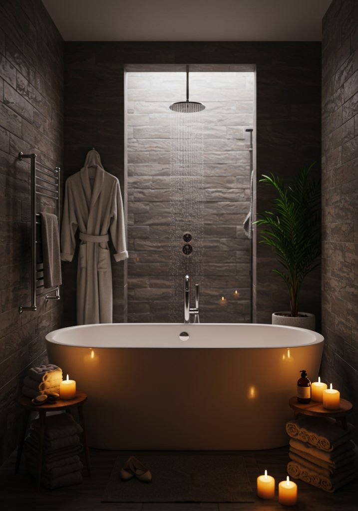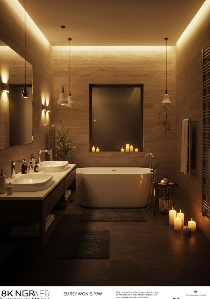 Spa bathrooms are all about soft, layered lighting. Harsh ceiling lights? Nope. Instead, try: