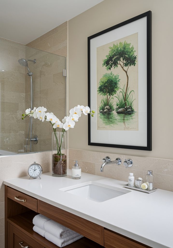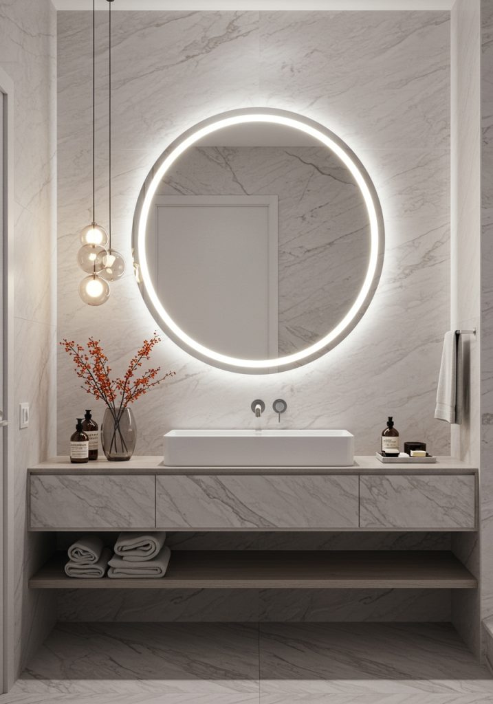 A statement mirror can double as art. Try round mirrors for a modern touch or framed mirrors for elegance. Browse these bathroom mirror ideas to find your perfect match.