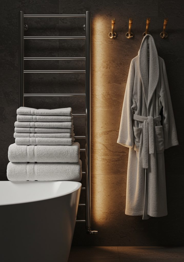 Don’t underestimate the power of fluffy towels and cozy robes. IMO, they’re the easiest way to feel pampered without renovating.