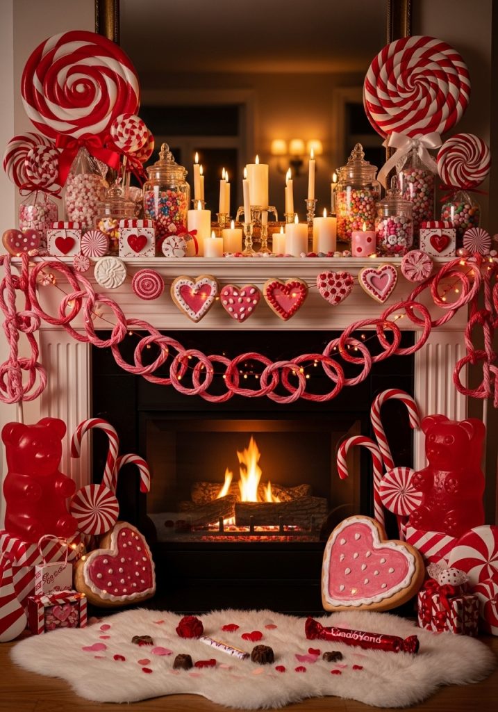 Balance the sweetness with at least one neutral item—like a white vase or wooden candlesticks—so it doesn’t look like a candy store exploded on your mantel. 😉
