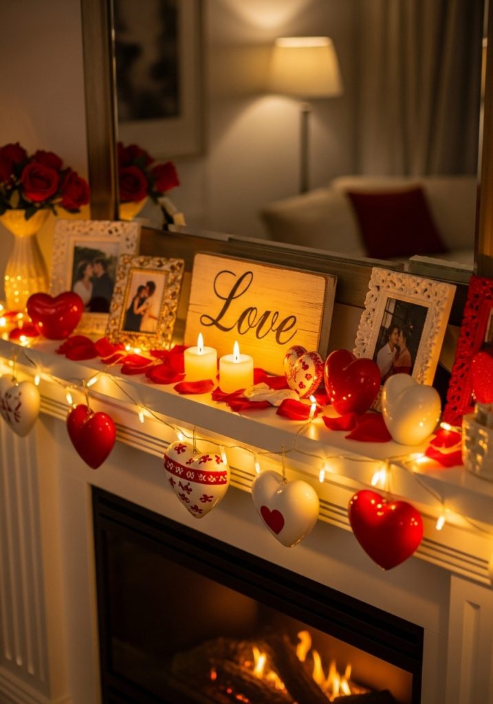 14 Valentines Mantel Decor Ideas for a Cozy, Romantic Fireplace
