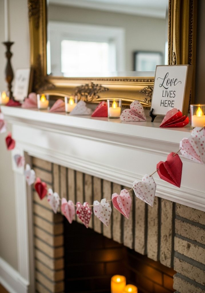 12. Budget-Friendly DIY Paper Hearts Mantel