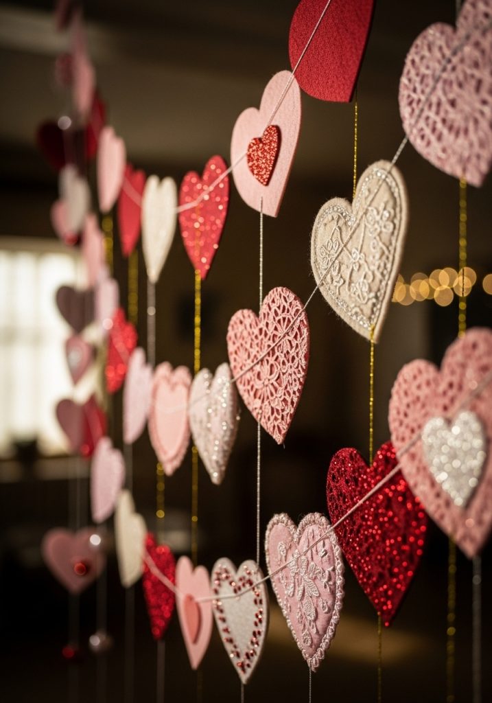 Cut hearts in different sizes and layer them in a garland or scatter them along the mantel. If you’re decorating on a tight budget, pair this with hacks from how to decorate your home on a budget to stretch your decor further all year.
