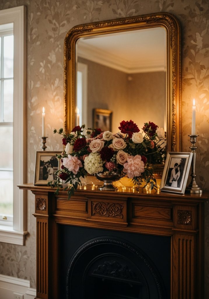 3. Romantic Mantel with Fresh (or Faux) Flowers