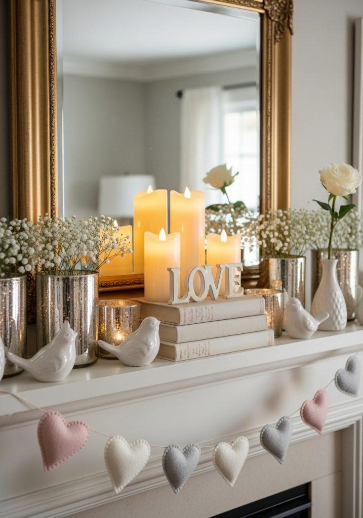 4. Neutral Valentine’s Mantel (For the “No Red, Please” People)