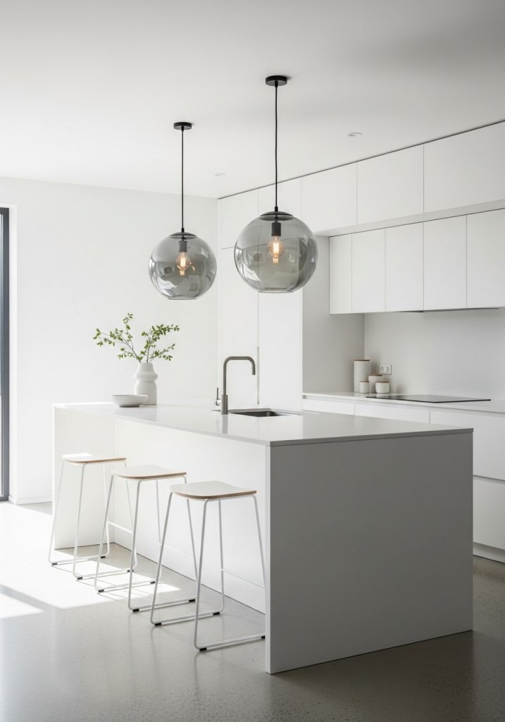 Don’t be afraid to go big! Two or three oversized pendants over the kitchen island can define the space. Whether you choose woven rattan for a boho look or sleek glass globes for a modern touch, scale matters.