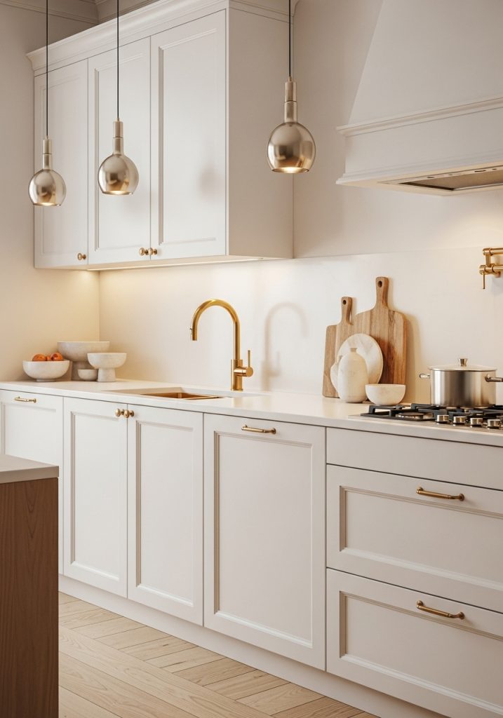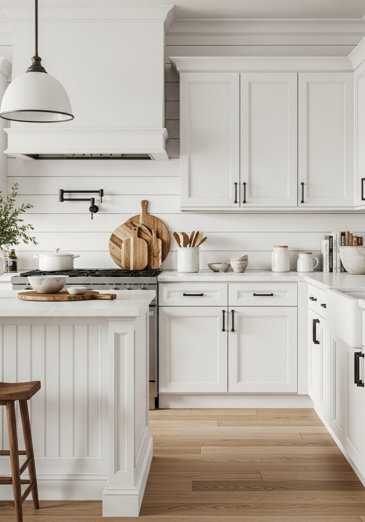 Want that cozy cottage feel? Shiplap walls or beadboard paneling on cabinet doors adds a subtle vertical or horizontal line that creates depth. It’s “white on white,” but the shadows created by the grooves make all the difference.