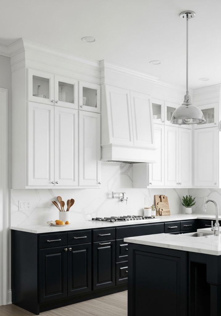 This is one of my absolute favorites. A tuxedo kitchen typically features white upper cabinets and black (or dark navy) lower cabinets. It grounds the space and hides scuffs on the lower cabinets—total win-win!